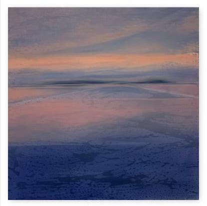 Myriad conditions of light created by the time of day and the weather illuminate textures in the water, patterns in the clouds, and juxtapositions of color that richly vibrate with one another to form the visual experience of the landscape. The morning light slowly eases up over the horizon, gently lighting the clouds, and later seen from the same vantage, the evening fire of the sunset races through the darkening sky. These dynamic combinations of light, shape, pattern. and color inspire my work.